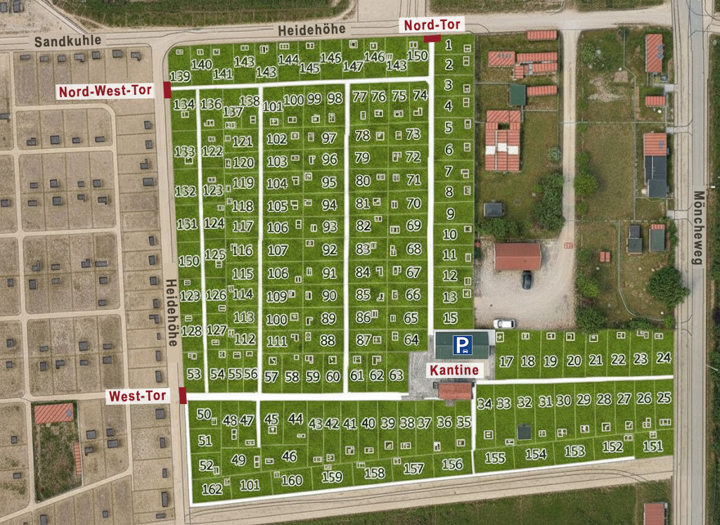 Hinweis: Der Hauptweg innerhalb der Anlage ist ein verkehrsberuhigter Bereich und darf ausschließlich mit Schrittgeschwindigkeit befahren werden.